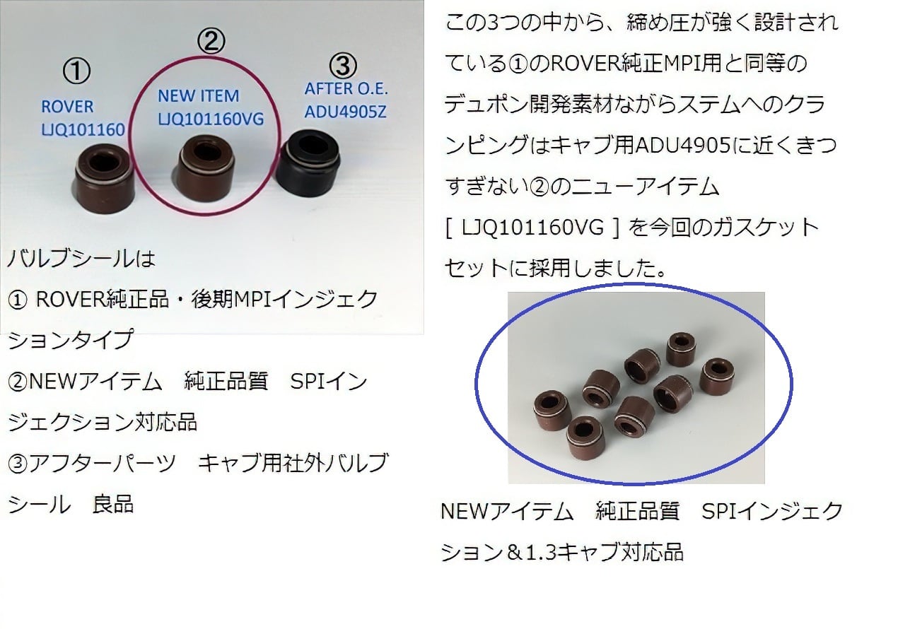 写真の説明にある厳選したガスケットとシールで高品質タイプのヘッドガスケットセットをセットしました。キャブ用ガスケット等は何種類も入っていて無駄になるものも多かったのであえて入れずにコストパフォーマンスを高くしました。